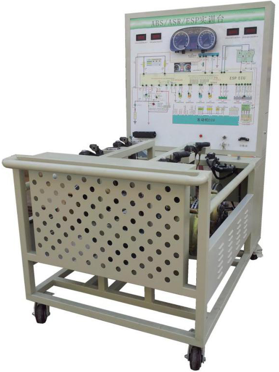 ABS/ASR/ESP制动系统实训台该设备采B5汽车ABS/ASR/ESP制动系统为基础,配有ABS/ASR/ESP系统工作原理图,真实展示紧急制动时ABS/ASR/ESP系统工作过程。满足对ABS/ASR/ESP制动系统的结构组成、动作演示等教学功能。适合于汽车ABS/ASR/ESP制动系统理论教学和检测与维修实训的教学需要。