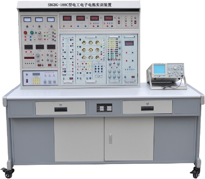 电工电子电拖实训装置是本公司在总结国内电工实训设备基础上采用成熟的技术推出的新型实训装置,综合了目前我国大学本科、专科、中专及职校电路分析电工基础电工学模拟电子技术数字电路电机控制继电接触控制及电力拖动等课程实训大纲的要求而研制,特别适用于高等院校现有实训设备的更新换代,及中专、职校等新建或扩建实训室,迅速开设实训课提供了理想的实训设备。