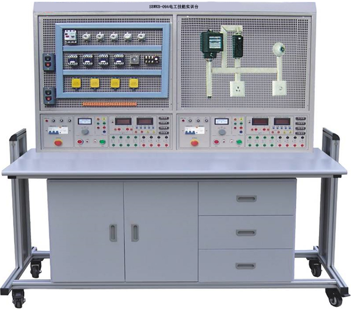 电工技能实训装置,电工技能实验台,电工技能实训设备,电工技能实训装置主要由实训桌、网孔板、实训元器件(也可自购)组成。学生根据实训线路进行元器件的合理布局,安装、接线全部由学生自行完成,接近工业现场。能完成机床线路,电机控制线路,照明配电的模拟操作、安装调试的综合实训,训练学生动手能力和实操技能。实训项目可自行确定,根据所选的项目选择相应的元器件。该装置也可作为电工考工的考核设备。