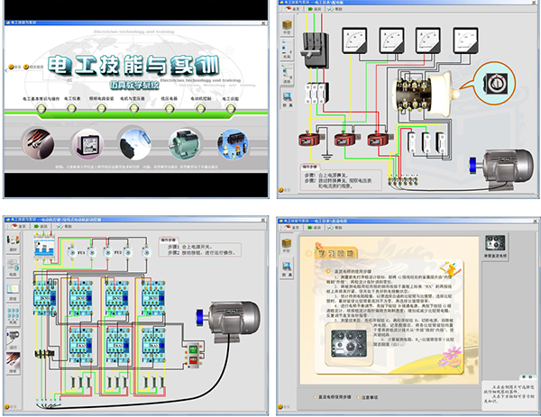 采用3D虚拟仿真技术,用户可以360度无死角观察器件外观细节;采用多媒体演示动画展示各种元器件的结构、功能、工作原理及控制方式;通过具有交互性的模拟仿真动画,进行电路的组装调试和故障排除,实现无实物学习电工设备相关专业所涉及到的常用仪器设备、电气检测以及电机控制的实际操作技能和注意事项。包括但不限于: