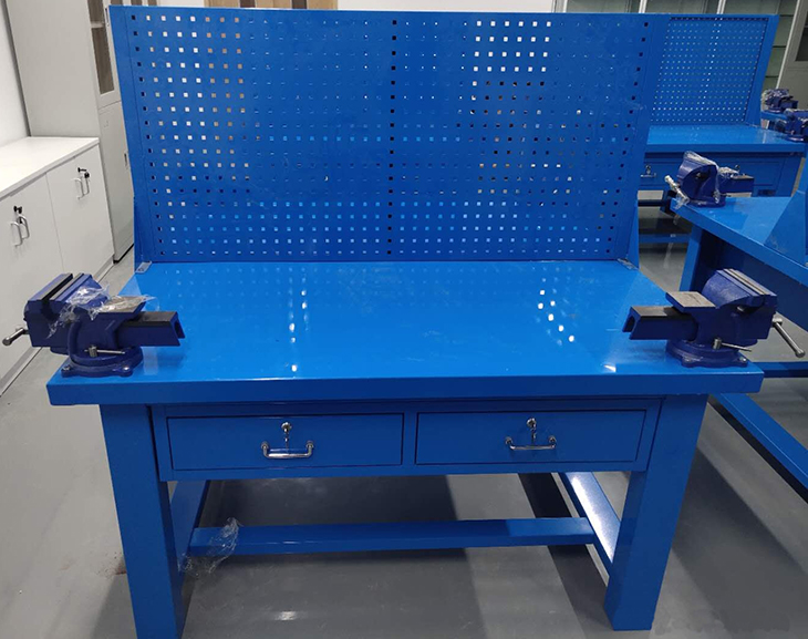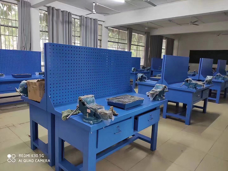 钳工工作台,金工实习教学通过训练使学生了解机械制造相关知识,熟悉机械制造各工种加工方法和操作过程,使学生开拓思维,提高动手能力,提高工程实践能力,为后续学习专业课程打下基础。