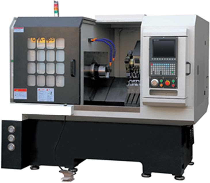 机床配备12工位卧式带Y轴升降动力刀塔,可完成车削以外的钻削、攻丝、键槽、六角等复合加工,提高零件加工的工序集中能力和加工精度。