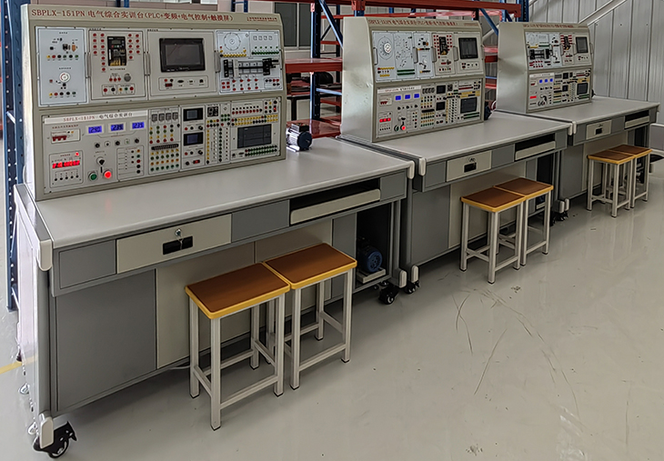 PLC可编程电器控制综合实训装置(S7-1200)(PLC+变频+电气控制+触摸屏),可以开设电机控制实验、PLC硬件组态、基本指令编程练习、Profibus-DP总线控制、变频器DP通讯控制等电机、PLC相关课程的基础实验和综合实训。该实验室能够满足自动化及相关专业的《电气控制与PLC技术》、PLC课程设计、变频器课程设计、毕业设计等课程的实验教学。