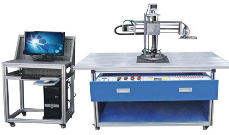 工业机械手实训装置为实际自动仓储系统的微缩,使用可编程控制器控制,在X、Y、Z轴三个方向上准确地驱动步进电动机进行物品搬运、移动的成品,完善的执行机构可实现现代物流系统中全部动作过程。配套三菱FX3U-48MT