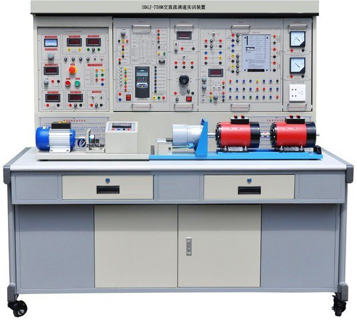 交直流调速实训装置是依据《电力拖动自动控制系统》、《直流调速》、《交流变频调速》、《高级维修电工(交直流调速部分)》教材大纲的要求,为配合高等院校、职业培训技术院校相关专业进行的课程实验而推出的一套现代化综合电机及驱动系列实训产品。交直流调速实验装置主要训练和考核学员对交流变频器和直流调速装置的参数设置和系统应用能力,通过对交流变频器控制电路和所控制电机负载的精心设计,使学员通过实验掌握交流电动机变频控制各种典型的工作状态;通过对直流调速装置主回路、控制回路和直流电动机负载的精心设计,使学员通过实训掌握直流电动机调速各种典型的工作状态。