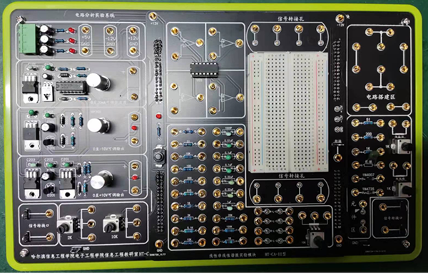 2、实验设计型。电路在设计上即满足验证实验的需要,同时也把开放型的电路设计好,加入开放型芯片管座、面包板、信号转接、元件库等,可方便学生动手搭建电路和测试。