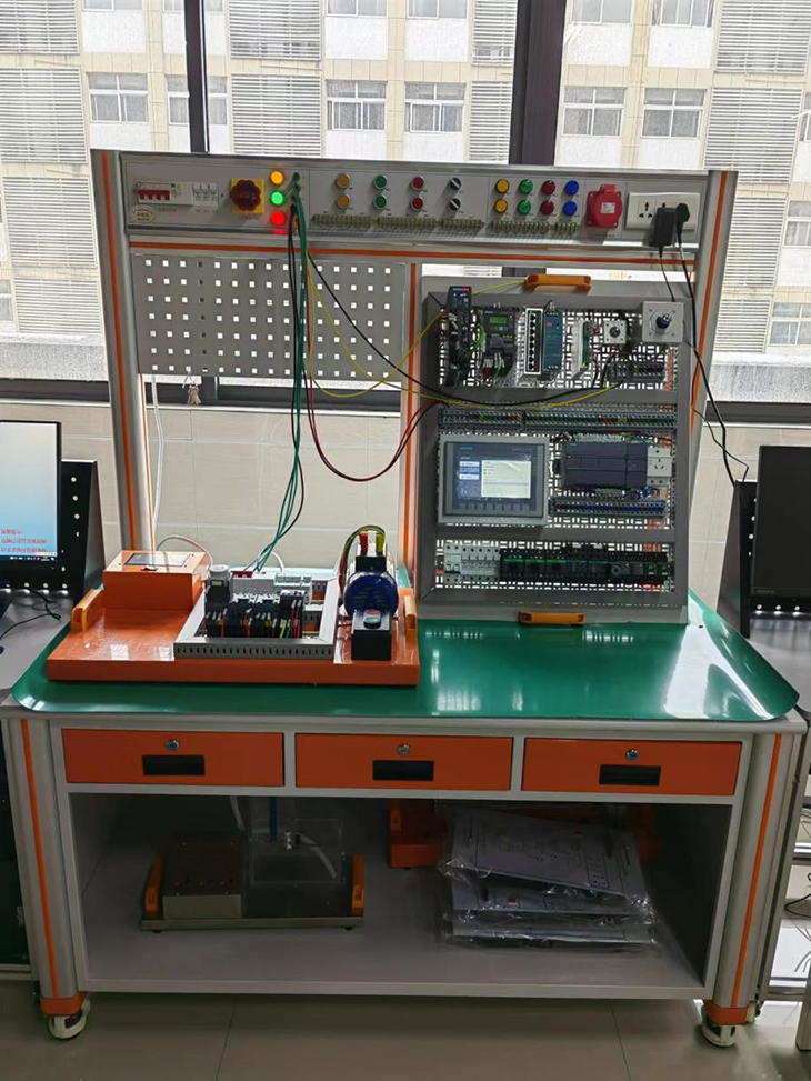采用万能网孔工艺设计,板材采用2.0mm厚优质钢板折弯后焊接而成,表面静电喷塑处理。挂板安装有低压电器等,所有器件端口引至接线端子,可与应用模块配合,完成接线、编程、调试等实训。