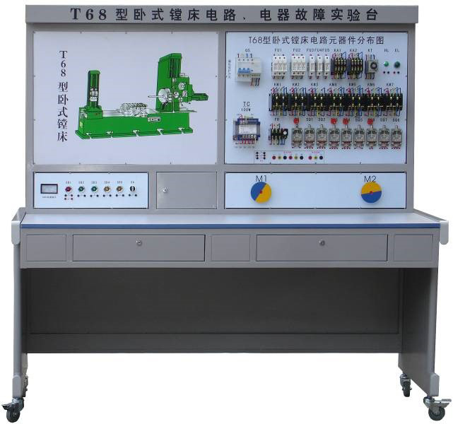 镗床电气技能实训考核装置,是为各大、中专院校、职业学校的电气、自动化及相关专业、社会电工培训、各县市维修电工鉴定所(站)等单位电气控制内容的教学、考核而研制的,可用于课堂演示、机床电气控制原理性操作及实验实习。装置人为隐蔽地设置了几十项电路故障,学生借助原理分析,全方位真实的机床电气故障排除训练,是进行技能培训考核的理想设备,教学效果显著。