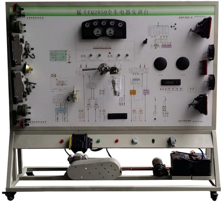 东风2050全车电器实训设备采用 全新猛士EQ2050柴油机整车电器实物为基础,充分展示汽车仪表系统、灯光系统、雨刮系统、喇叭系统、发动机电器系统、起动系统和充电系统等汽车电器各系统的组成结构和工作过程。