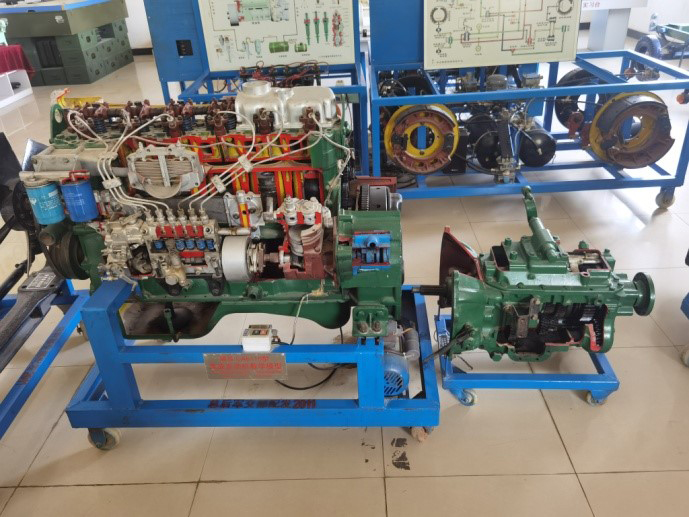 1.采用发动机实物总成进行机构切剖,充分展示发动机机部分的内外结构。