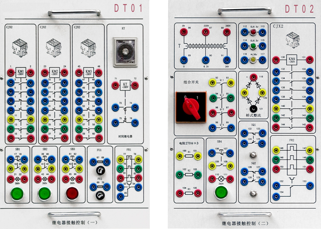 电工电拖综合实训设备用途: 适用大中专院校"电工基础""电工学""数电""模电""电机学" "电机与电力拖动""电气控制""继电接触控制"等课程的实验教学。并可扩展"可 编程控制器""电机变频控制"等实验内容。