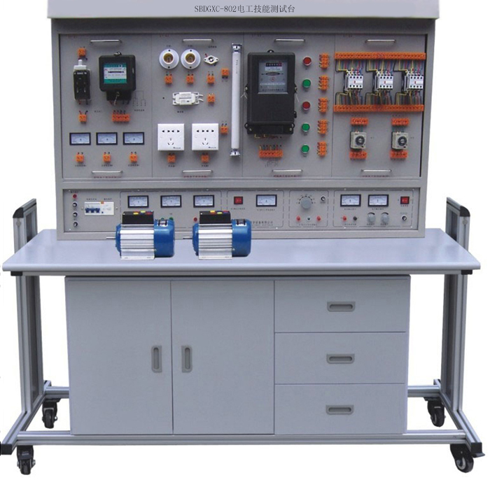 电工技能测试台,电工技能测试实训装置采用国际常用的模块化设计,根据不同的实训考核内容配置相应的实训模块,实训方便、布局合理、易于扩展升级,实训内容涵盖电工仪表、电工接线工艺、电子电路、电工照明配电、电力拖动、PLC 综合训练、触电急救、安全消防等,符合初、中级电工国家职业标准教、培、考的要求,适应各职业学校、技工学校、中专学校、劳动培训及技能鉴定机构等单位的教学培训、实训考核、技能鉴定。