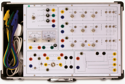 电工技术实验箱主要是进行电工学及电路原理中的强电部分实验,如单相交流电路、三相电路、日光灯电路实验。本实验箱由模块单元和元件库相结合的板面构成,全部采用欧洲标准的安全插座和安全实验导线,连线方便,接触可靠,而且寿命长、效率高,有效预防触电隐患。实验面板上印有元件符号及主要参数便于学生识别。实验箱结构紧凑实用直观,安全可靠,能有效培养学生的动手能力,维修方便、简捷。可满足各类高、中等院校及职业技术类院校开设的电工典型实验。