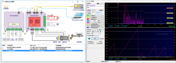 把工业机器人的电气柜各大部件拆散安装在网孔架上,清晰体现机器人电气连接原理。主要部件有:电源、滤波器、机器人运动控制器、伺服驱动器、示教器、扩展IO。同进时还有一个故障设置模块,通过人机界面操作可以设置典型的故障,并通过人机界面设置解除故障。