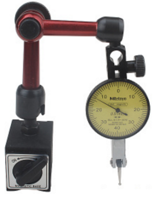 百分表是利用精密齿条齿轮机构制成的表式通用长度测量工具。通常由测头、量杆、防震弹簧、齿条、齿轮、游丝、圆表盘及指针等组成。把百分表安装在机器人J6法兰上,通过机器人的不同位置的循环运动,可快速的测试机器人重复精度。