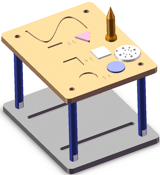 码垛模块采用银色铝合金材质,包含:码垛底板,不同大小的码垛工件。