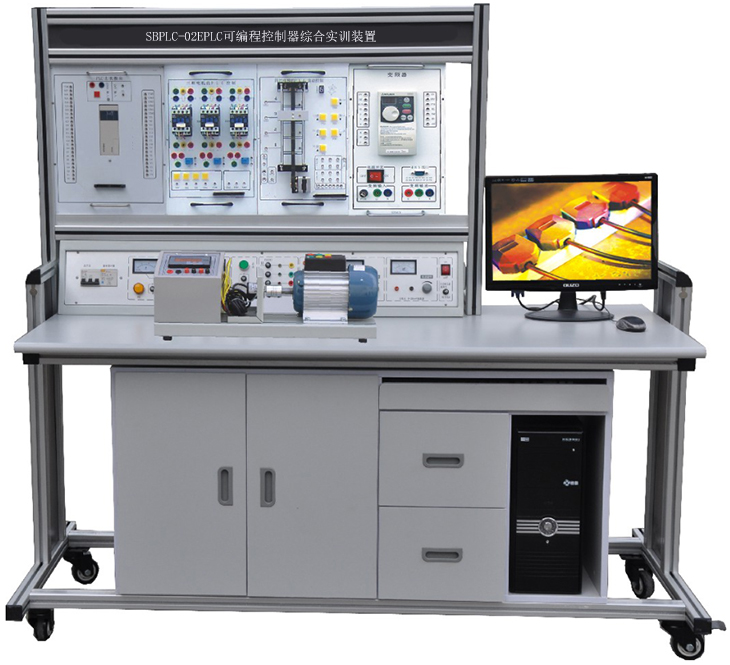 PLC可编程控制器综合实训装置,可编程控制器实训装置,可编程控制实训室(PLC)是专为目前我国各院校开设的《可编程控制器技术》、《可编程控制器及其应用》、《变频调速技术》等课程配套设计的。集可编程逻辑控制器、通信编辑器、编程软件、工控组态软件、仿真教学软件、模拟控制实训挂箱、实物等于一体,可直观地进行PLC的基本指令训练,多个应用广泛的PLC实际应用模拟实训和实物控制实训,同时也为了高层次的设计开发实训提供良好的条件。为了结合教学要求,设计过程中参考了国内多种教材,从中精选出二十七组最具典型性的实训项目,配备三相鼠笼异步电机、继电器、变频器能完成多个电气控制实训。产品采用挂箱式,便于实训项目扩展和用户第二次开发。