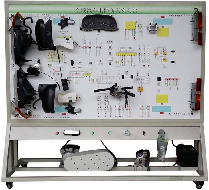 接通电源,操纵示教板上的各种电器开关、按钮、真实演示汽车仪表系统、灯光系统、雨刮系统、喇叭系统、发动机电器系统、起动系统和充电系统等汽车电器各系统的工作过程。