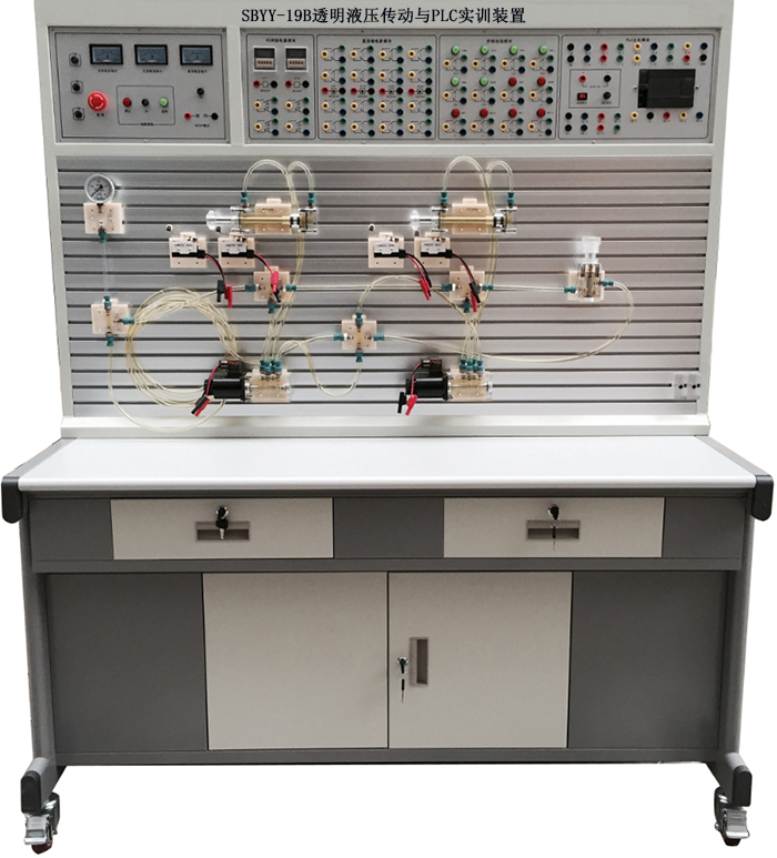 液压实验台,气动实验台,透明液压传动与PLC实训装置是根据高等院校机电一体化教学大纲要求,在上海硕博公司专利产品透明液压传动演示系统的基础上广泛征求专家、教授与老师的意见,采用了开放型综合实验台结构,经不断创新改进研制而成的,是目前液电控制最理想的实验室设备、即可用于初学者的学习实验实训,也可用于职工的技能培训;可以加强学员深入掌握专业知识,提高解决实际问题能力、广泛用于学校、部队、军事、院校、机械、汽车、船舶、医疗、航空、钢铁、化工、电力、石油、机械工程等各个领域。