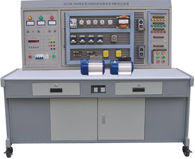 网孔型万能机床电路实训考核鉴定装置主要由实训屏、网孔板、实训元器件、实训桌组成。结构合理、外观新颖,元器件在网孔板上合理安装、线路的合理布局,全部由学生自行完成,接近工业现场,有效培养学生实际操作技能。所配置的元器件能完成"工厂电气控制""电机拖动""控制线路与技能训练""常用机床控制线路"等课程的实训与考核,增加元器件能扩展"电工技能实训""电工仪表与测量"等课程的实训,其适合大中专院校、职校、技校实验室的新建、扩建或实验室的更新换代,也可作为电工考核的考核设备。