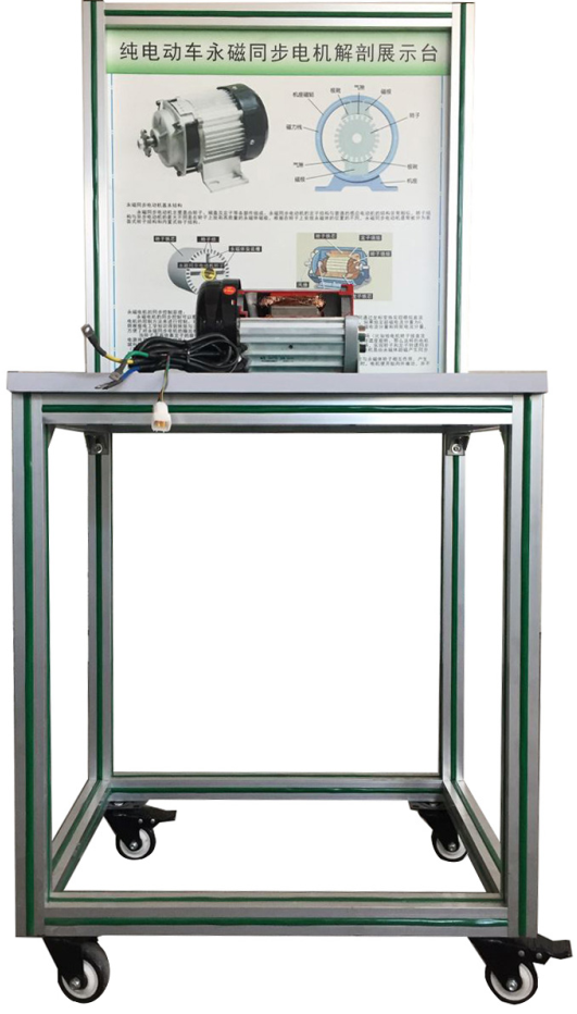 选用新能源电动车电机(60V2KW永磁同步电机),通过解剖,剖面喷涂不同颜色,总成内部的机械结构和相互之间的装配关系清楚的显现在外面。展示驱动电机内部结构,可对照解剖物,了解驱动电机结构与原理。