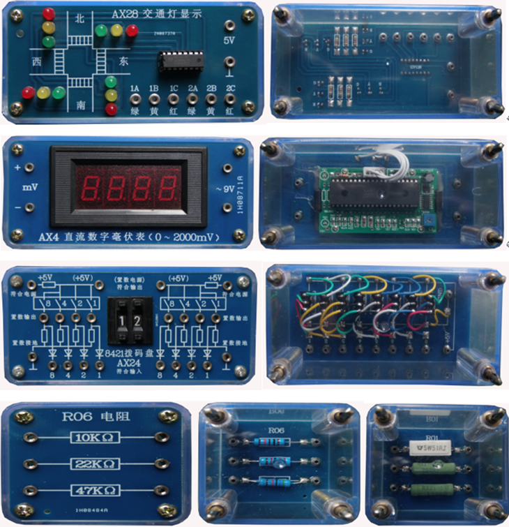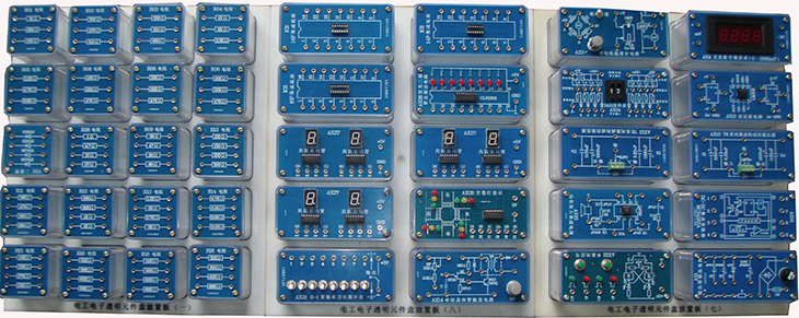 (透明电子元件模块示例图,共9块板,140多只透明有机塑料封闭元件盒)
