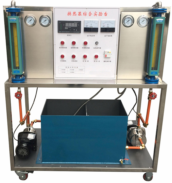 4、实验台由三种(列管式、套管式、板式)换热器为实验对象,它们分别由电磁阀控制与冷流体和热流体接通和断开,以便进行单独实验操作。对套管式换热器则又设置了四只电磁阀与冷流体连接管路构成了顺流和逆流的切换操作。