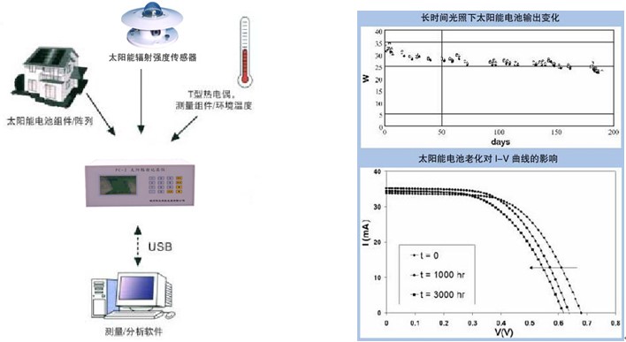 准确测试光伏方阵和组件在野外条件下的太阳辐射强度,环境温度,风速,电池组件的温度,开路电压、短路电流、最大功率、最大功率点电压、最大功率点电流和填充因子测算光伏方阵和组件在标准测试条件下(STC)下的开路电压、短路电流、最大功率、最大功率点电压、最大功率点电流、填充因子和转换效率