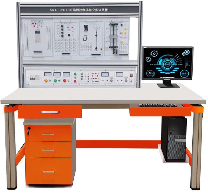 六、PLC可编程控制器实训桌:铝木结构,采用特制模具制作的优质铝合金做框架,铝合金表面经氧化处理,经久耐用,美观大方,符合现代审美观,桌面为防火、防水、耐磨高密度板,桌子下部配置储存柜及电脑主机柜。