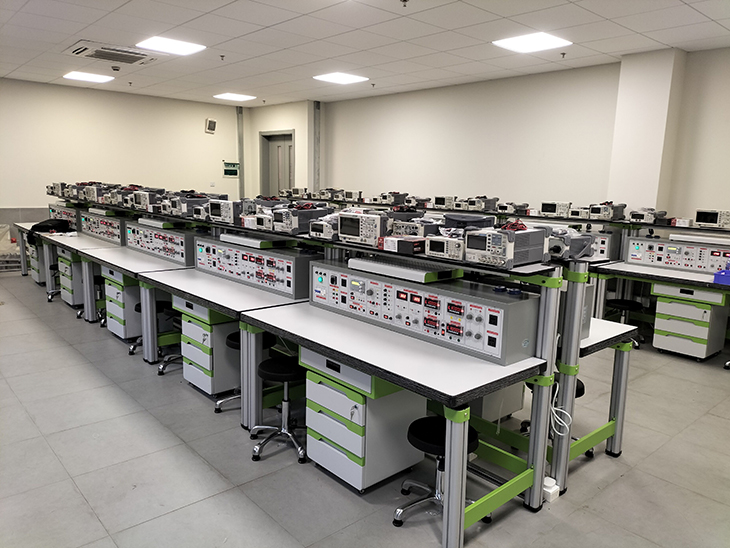 万用表。模拟电子技术实验室按照新思路、新体制、新方法进行建设,包含验证性实验、综合性实验、设计性实验、创新性实验,实验室采用多种方案进行实验教学,以促进教学改革的发展和教育质量的提高,更好地满足受教育者的需求,把实验室建设成为高质量、有特色的新型实验室。实验室仪器设备能满足实验教学的需要,能开出实验教学大纲要求的所有实验。电子实验室在完成正常教学任务外,还开放实验室,开展多种第二课堂活动,并为大学生电子设计大赛、大学生挑战杯,学生毕业设计等提供相关的支持。
