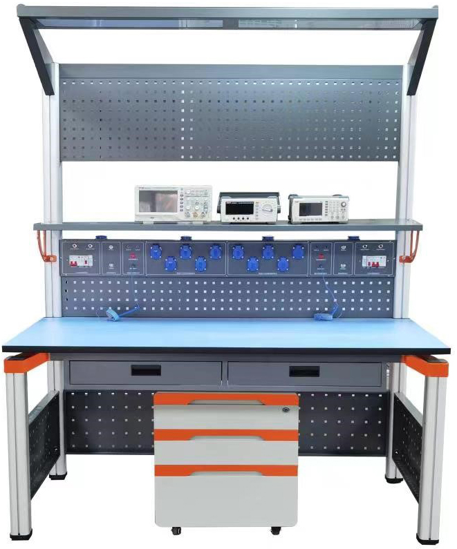 该设备主要由工作台、实训屏、实训屏模块、工具柜、电路实训模块