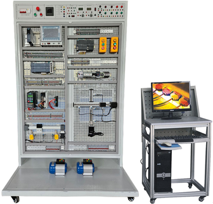 采用模块组合式结构,含开关量、模拟量、变频调速、触摸屏、通信模块等,配套MCGS工控组态监控软件,实现仿真化、信息化实训教学。