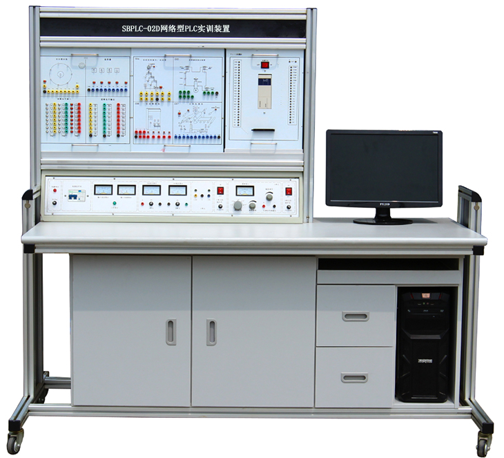 PLC实训装置,PLC控制+变频+触摸屏+步进+伺服, 采用西门子S7-1200系列可编程控制器,西门子G120变频器,采用工业及7寸触摸屏,兼容性强,画面编辑功能强,图库丰富,满足日常教学需求和工业控制要求。多种通信方式:通过以太网总线,将实训装置(从站)PLC和主站PLC进行以太网主从通信。PLC与触摸屏实现S7通信,触摸屏画面可实时监控PLC系统运行状态和控制PLC系统。PLC采用网络型,与实验室另外的PLC设备可以实现485通讯、以太网通讯。本装置是PLC可编程控制器综合实验设备。做到一机多用、资源共享、便于管理、PLC部分模拟实际工业控制过程中典型的控制对象,它形象生动的演示了PLC的整个执行过程。能够形象生动的执行机构验证自己编写程序的正确性,掌握PLC的实际应用,增强学生对PLC的学习兴趣。产品采用挂箱式,便于实验项目扩展和用户第二次开发。自产品推出以来,得到了各大院校教学教师和专家的一致好评。全套装置设计合理、功能强大、操作简单方便,对学生理解和掌握可编程控制器的控制原理和操作方法。加快学习PLC的编程方法。都具有极大的帮助。
