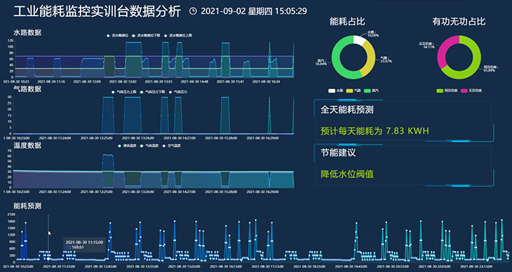 (2)本地平台可视化展示通过低代码编程、看板设计本地显示页面,展示当前实训台水、气、电的实时采样数据。