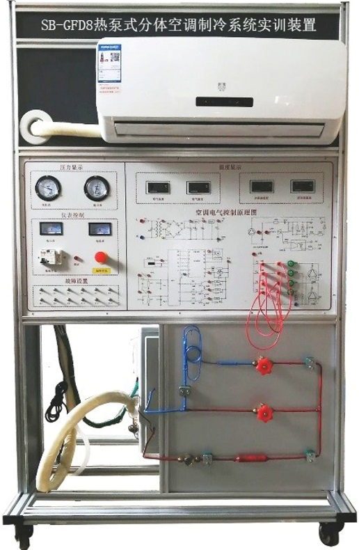 热泵式分体空调制冷系统实训装置是为大中专院校的制冷空调专业、各技能培训及全国职业技能鉴定部门开发设计的,适用于"制冷原理及应用"、"制冷空调技术"、"制冷空调设备维修与操作"等教学实训要求。该装置集制冷系统、电气控制系统、故障模拟系统为一体,布局合理、造型美观大方。