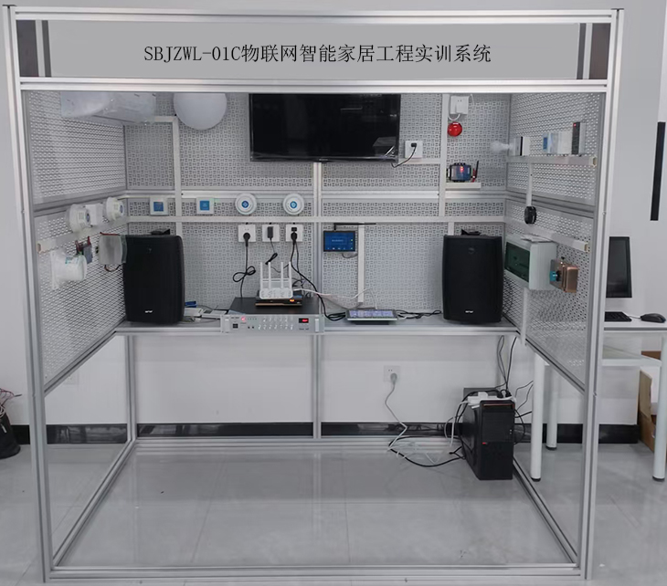 物联网智能家居工程实训系统、物联网智能家居综合实训中心(工程型)是针对高等院校物联网实训的需求,综合运用传感器采集、设备控制、无线传感器网络、嵌入式系统、网络通信、中间件等物联网技术以及多学科技术的交叉融合,依托部署在网板上的各种传感器节点、控制节点、智能网关、智能终端实现家居生活环境的智能安全监测、智能安防监测、智能报警、智能设备控制、远程视频监控、网络化远程监控等功能,贴近实际智能家居系统,为物联网专业教学提供了一个完备的应用实训系统。