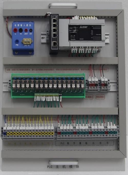 5)PLC信号全部通过多功能端子排引出到面板,避免长期训练,损坏PLC主机自身的端子。同时能实现快速插拔实训和工业接线工艺训练。