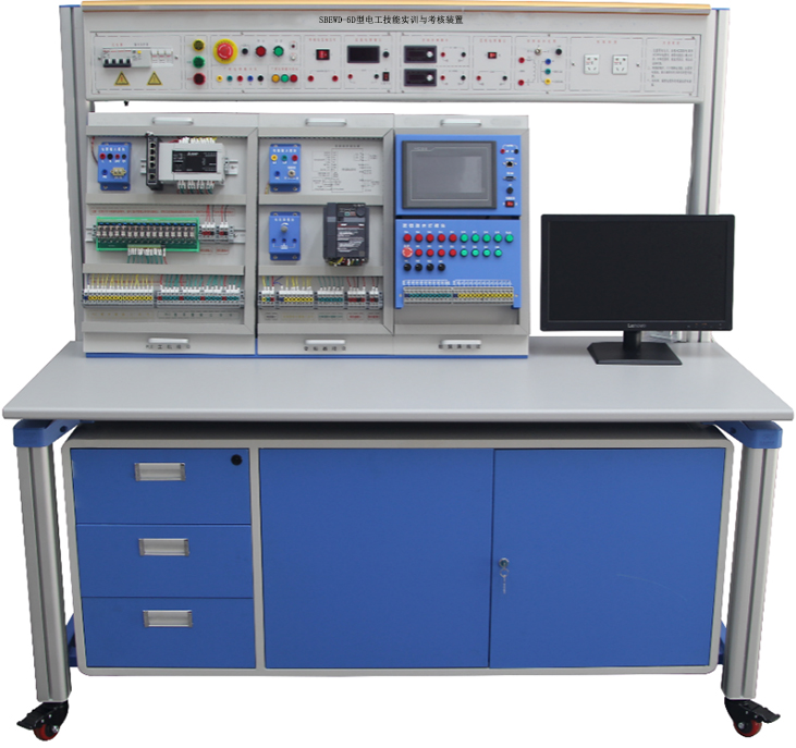 电工技能实训与考核装置、该平台主要包含操作平台、电源控制屏、电气考核板、电器元件、电气安装、电气调试与实训室信息化配套教学资源。适用于职业院校的机电设备安装与维修、机电技术应用、电气运行与控制、电气技术应用、电子电器应用与维修等专业和非机电类专业的必修课程《可编程控制器技术》、《电器及PLC控制技术》、《触摸屏原理及其应用》、《变频器原理及其应用》、《PLC