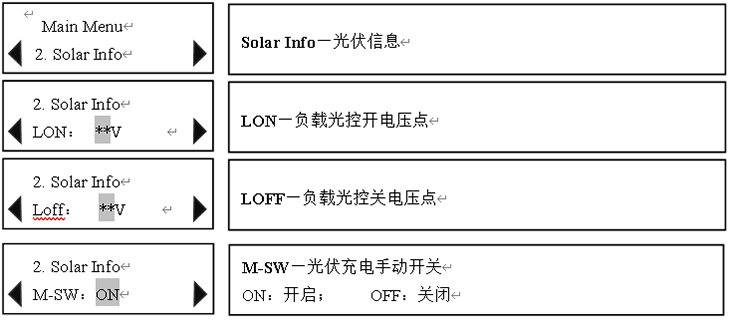 Ø 光伏充电开关功能在控制器上用户可以手动设置光伏充电的打开或关闭。