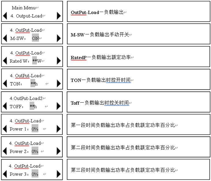 Ø 负载输出开关功能在控制器上用户可以手动设置负载端的打开或关闭。