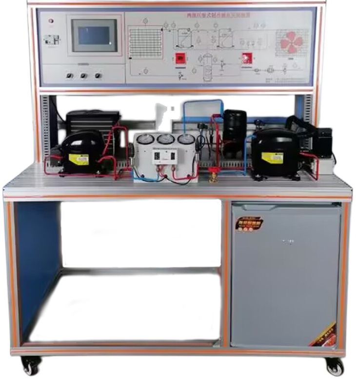双级压缩机式制冷系统实验装置,双级压缩制冷实训装置:随着制冷技术的发展,对于用冷量大的系统采用单机双级压缩制冷装置己不是最佳方案,而采用单机配打双级压缩制冷装置得到越来越广泛的应用。主要介绍双级压缩制冷过程中间压力对制冷系数的影响,从而为设计单机配打双级压缩制冷装置时,合理的选择中间压力提供依据。