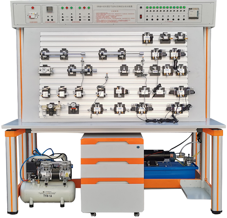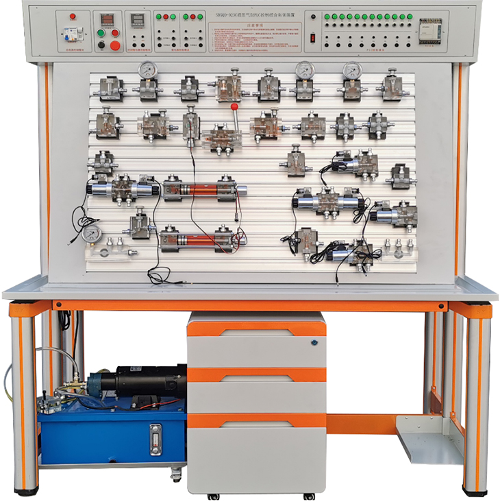 双面透明液压气动PLC控制实验台,液压气动PLC控制综合实训装置,透明液压PLC控制教学实训装置,气动PLC控制教学实验台,液压与气动实训室主要承担机电技术应用、电气技术应用专业和机电一体化专业等相关专业的《液压与气压传动》与《机械知识》等课程的实训教学任务。该实训室能让学生很好地理解和掌握液压与气动元件结构、形状、作用和工作原理方面的知识,掌握常用的液压回路作用、工作原理及安装调试方法。还可以完成压力控制回路实训、速度调节回路实训、方向控制回路实训、双缸工作控制回路实训、各种液压元件的性能实训、PLC控制的液压气动基本回路实训等三大类18种液压气动实训项目。通过这些实训项目实现了理论教学与实践教学的有机结合,提高了学生的学习兴趣及动手能力,培养了学生的学习能力、实践能力、创造能力及应用能力,为将来从事与机械相关的制造、维修等工作打下良好的基础。
