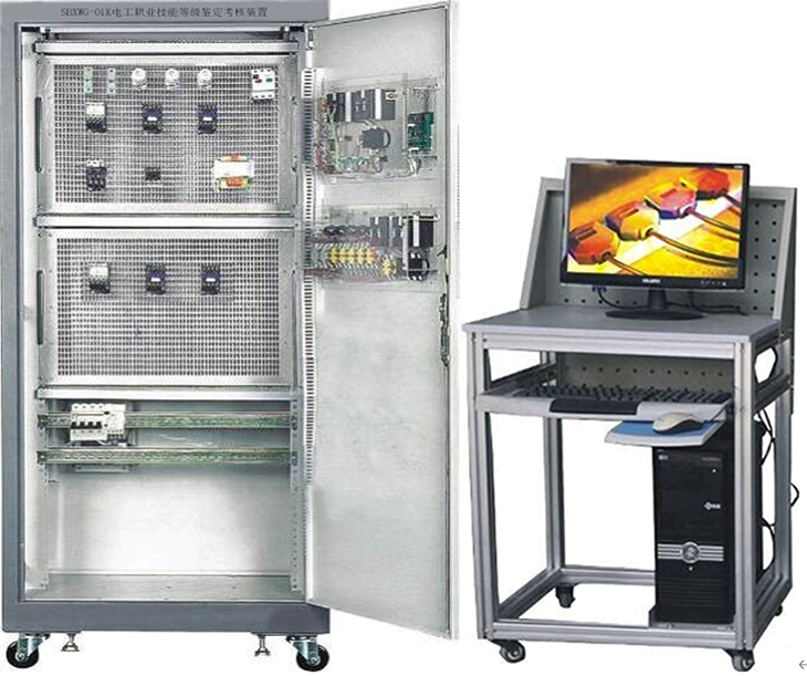 是根据劳动和社会保障部与机械工业部联合颁发的《工人技术等级标准》和《职业技能鉴定标准》的要求进行设计,可针对机械工业出版社出版的机械工人职业技能培训教材《高级维修电工技术》中列出的电气控制线路和实用电子线路等进行实际操作训练;同时还参考了部分省市《高级维修电工技能考核试题》的操作考核项目。本实训柜实训内容包括实用电子技术、继电控制电路、机床电路、双速电机控制电路、直流电机控制电路、PLC控制、变频器应用、直流调速器应用、触摸屏应用等,是一套集培训学习、理论验证、实际操作训练、考核鉴定于一体的多功能设备。