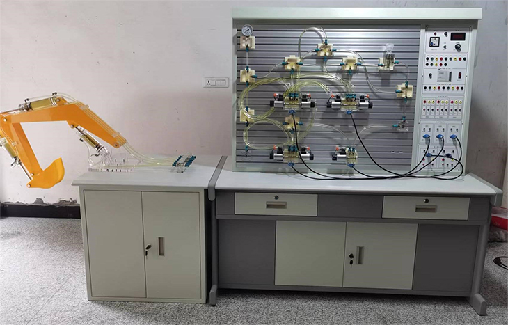 透明液压挖掘机系统与PLC控制实训装置采用透明有机玻璃外壳的液压元件及防漏透明油管,能清晰直观的观察到液压元件内部结构和流动过程。可真实演示挖掘机工作装置的挖掘、卸料、提升等动作、多种控制方式(手动、继电器、PLC)的基本回路实训。适合大中专院校机电类专业"液压传动"、"液压与气压传动"等课程的教学实训需要。