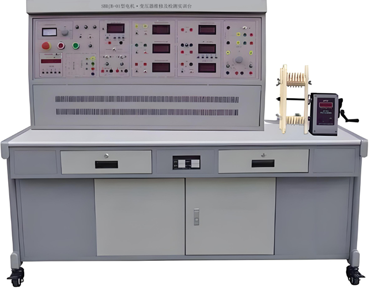 电机·变压器维修及检测实训台、电机维修及检测实训装置是进行单相变压器、单相异步电动机、三相鼠笼式异步电动机(及他励直流电机)的拆除、重绕、组装、测试、数据分析、故障查找及排故检修等技能训练的实训平台。注重学员对电机的拆除、重绕、组装以及对试验后数据的分析、查故排故等能力的培养。对于使用中的电机,电机与变压器维修及检测实训装置还可以对其进行日常巡视和定期检修功能,还可以通过专用探测仪器快速准确地查找故障点。