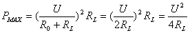 当满足RL=R0时,负载从电源获得的最大功率为: