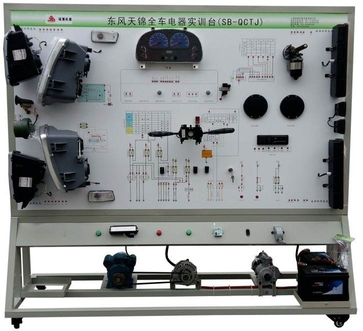 柴油车电路示教板该设备采用全新东风天锦柴油机整车电器实物为基础,充分展示汽车仪表系统、灯光系统、雨刮系统、喇叭系统、发动机电器系统、起动系统和充电系统等汽车电器各系统的组成结构和工作过程。