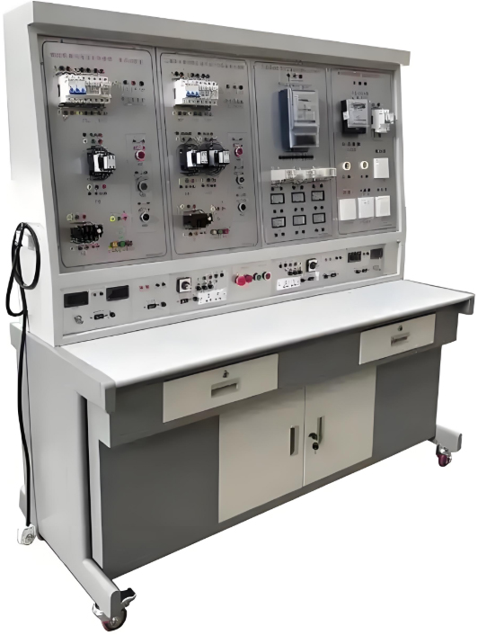低压电工实训平台、低压电工实训装置主要承担电气工程及其自动化、自动化两个专业及相关电类专业的实训教学任务。低压电工实验室主要设备有初级电工实训考核装置,电路照明技术装置。具有操作方便、一柜多用等特点。可开展三相异步电动机各种启动、点动、自锁、正反转控制以及常用低压电气、测量电路安装、照明电路等方面实训项目。通过实训,使学生掌握常用电工仪器仪表的使用及操作方法,培养学生工程实践能力,兼顾工程设计能力,提高学生实际操作技能,提高学生就业技能水平。