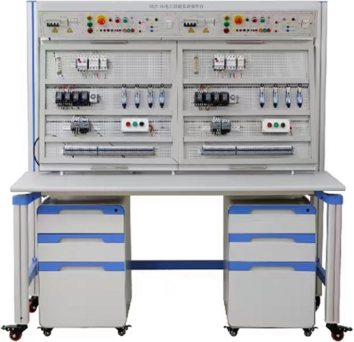 电工技能实训操作台由钢板作制作的多功能安装板(网孔板)实训台和电源装置等组成。实训时选择的各种元件、器件和部件,可方便地安装在网孔板上,方便灵活。