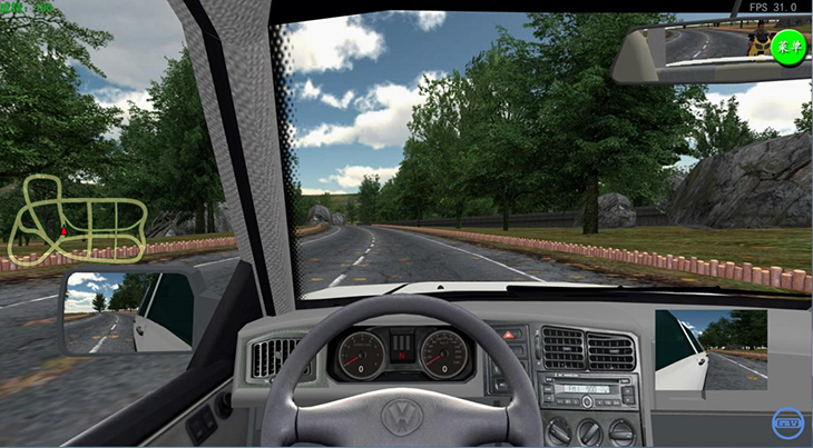(2)雨天驾驶:突出道路湿滑、积水时的安全驾驶操作方法、防范汽车侧滑、甩尾的驾驶规范,真实模拟雨点与玻璃的碰撞、视线的渐变、雨刮刮过的效果、车外后视镜的模糊等,雨刮器的使用;雾天驾驶:突出视线不好,近光灯的使用、喇叭的使用及雾天安全驾驶要领;